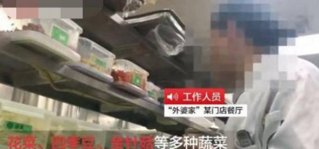 視頻顯示,外婆家某門店后廚內(nèi)花菜、金針菇以及四季豆等多種蔬菜簡單加工后便直接下鍋,從不清洗。據(jù)工作人員介紹花菜、金針菇等蔬菜不洗已經(jīng)成為飯店的潛規(guī)則,“眼不見心不煩就吃下去了,自己在家肯定洗”。另有一位工作人員表示,花菜一洗就爛了,往油鍋里面一炸相當(dāng)于高溫消毒了。