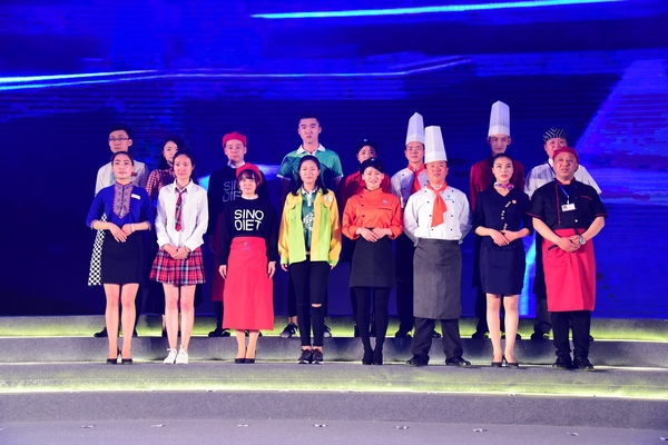 當(dāng)天下午,還專門舉行了中國(guó)團(tuán)餐人文化展示——企業(yè)制服秀,全國(guó)各地企業(yè)獨(dú)特新穎的企業(yè)服裝不僅代表的是企業(yè)文化更是一種品牌象征。中膳黑色文化衫上的SINO DIET義為“中國(guó)飲食”,紅色圍腰和紅色帽子是中膳朝氣蓬勃的象征。